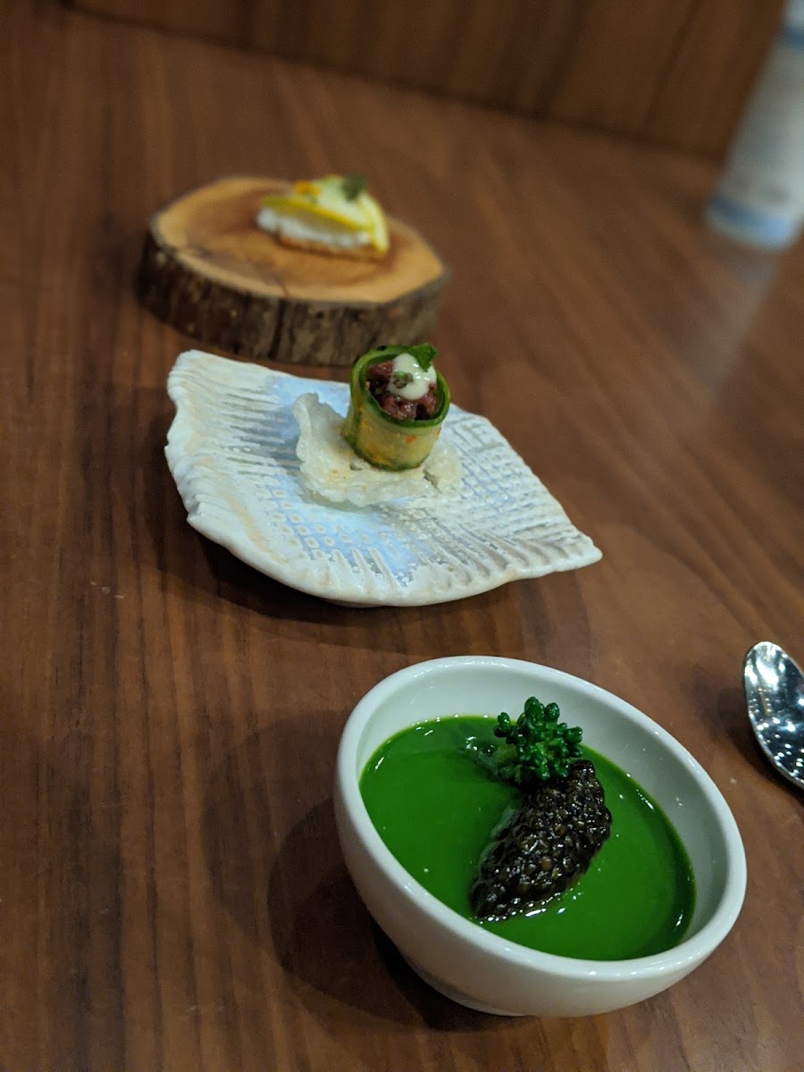 The setup is simple: a small dining room, a curved counter, and a front-row seat to the kitchen. Watching the team work is half the experience. During my visit, each dish came together with calm precision, no wasted movement, no theatrics. That focus shows up on the menu, which changes often and leans heavily on seasonal ingredients. Servers explain each course in plain language, which makes even complex techniques easy to understand without feeling like a lecture.